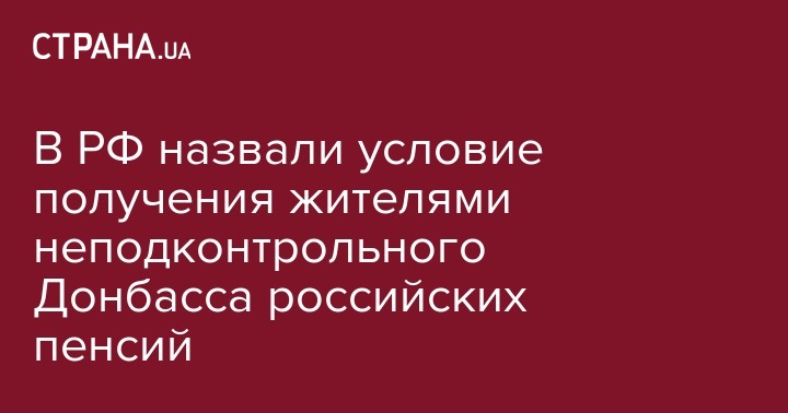 "Российские пенсии гражданам, постоянно проживающим на Украине, в том числе в Донецкой и Луганской областях, не назначаются. При переезде этих граждан на ПМЖ в Россию их пенсионное обеспечение будет осуществляться в общем порядке по нормам законодательства нашей страны", - говорилось в заявлении ПФР.
