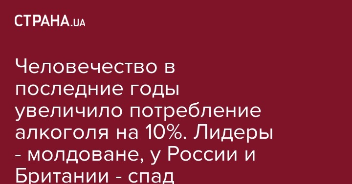 Человечество в последние годы увеличило потребление алкоголя на 10%. Лидеры - молдоване, у России и Британии - спад