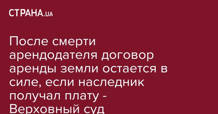 В Украине договор аренды земли, зарегистрированный после смерти арендодателя, действителен, если наследник получал арендную плату. Об этом пишет Лига, ссылаясь на постановление Верховного Суда в составе объединенной палаты Кассационного гражданского суда.