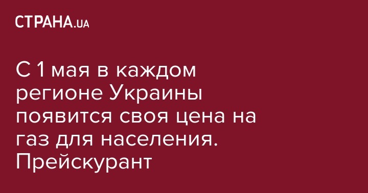 С 1 мая в каждом регионе Украины появится своя цена на газ для населения. Прейскурант