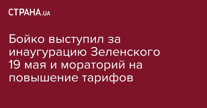 Бойко выступил за инаугурацию Зеленского 19 мая и мораторий на повышение тарифов