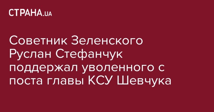 Советник команды будущего президента Владимира Зеленского Руслан Стефанчук выразил поддержку уволенному главе Конституционного суда Украины Станиславу Шевчуку, который заявил о незаконности своего отстранения и о намерении его обжаловать.