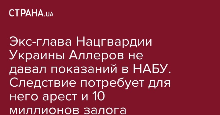 Экс-глава Нацгвардии Украины Аллеров не давал показаний в НАБУ. Следствие потребует для него арест и 10 миллионов залога