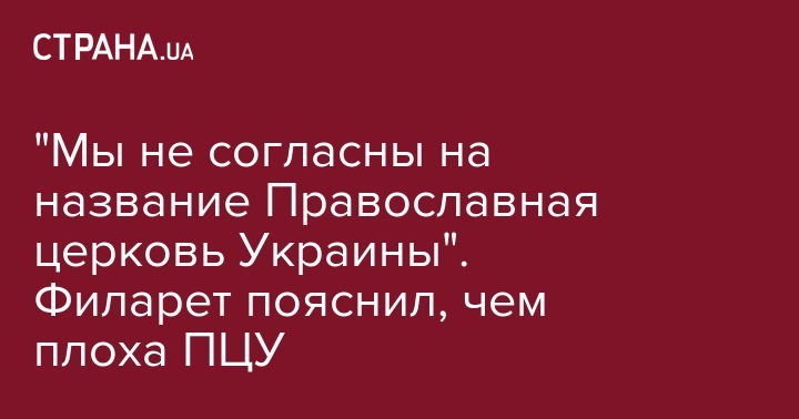 Почетный патриарх ПЦУ Филарет заявил, что название Православная церковь Украины ему не нравится, так как оно не отображает принадлежность к ней православных украинцев, проживающих за рубежом. Об этом он сообщил во время пресс-конференции, трансляцию которой в YouTube вел ТСН.