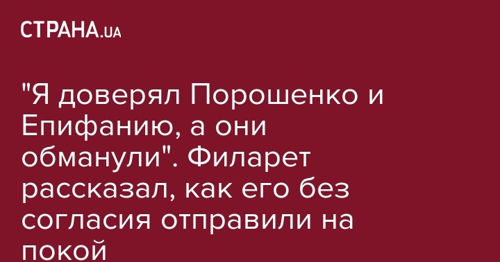 "Я доверял Порошенко и Епифанию, а они обманули". Филарет рассказал, как его без согласия отправили на покой