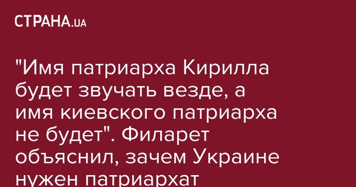 "Если украинская церковь откажется от статуса патриархата, то в Украине будет только один патриархат - Московский, и имя патриарха Кирилла будет звучать везде, имя киевского патриарха не будет. И мы сами ликвидируем поминовения киевского патриарха по Украине", - сказал Филрет.