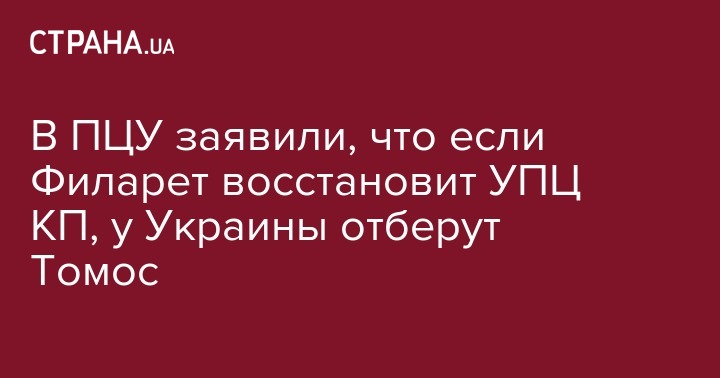 В ПЦУ заявили, что если Филарет восстановит УПЦ КП, у Украины отберут Томос