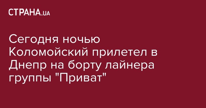 Сегодня ночью Коломойский прилетел в Днепр на борту лайнера группы "Приват"