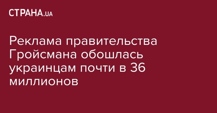 Реклама правительства, руководимого премьером Владимиром Гройсмана, в 2019 году стоила бюджету Украины 35,94 миллиона гривен налогоплательщиков. Об этом сообщает общественное движение "ЧЕСНО".