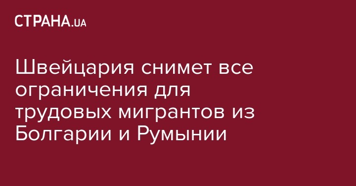 Швейцария снимет все ограничения для трудовых мигрантов из Болгарии и Румынии