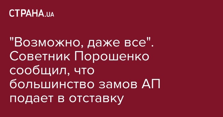 Большинство заместителей главы Администрации президента подает в отставку. Об этом сообщил внештатный советник уходящего президента Украины Петра Порошенко, экс-спикер его избирательного штаба Олег Медведев, пишет Интерфакс-Украина в пятницу.