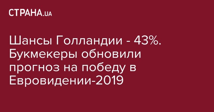 Шансы Голландии - 43%. Букмекеры обновили прогноз на победу в Евровидении-2019