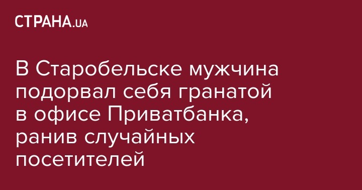 "Сегодня, в 16:30 в помещении филиала одного из банков, который расположен по улице Шевченко в г.Старобельск, мужчина 1972 г.р. подорвал гранату. В результате взрыва мужчина погиб на месте. Телесные повреждения различной степени тяжести получили 5 гражданских лиц, из которых двое - работники банка, и 3 - местные жители, которые находились в это время в помещении банка. Телесные повреждения получил сотрудник следственно-оперативной группы Старобельского отдела полиции", - написала Погукай на своей странице в соцсети.