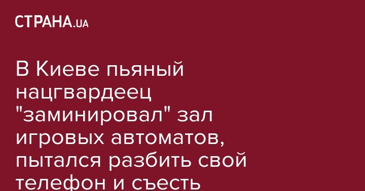В Киеве пьяный нацгвардеец "заминировал" зал игровых автоматов, пытался разбить свой телефон и съесть сим-карту