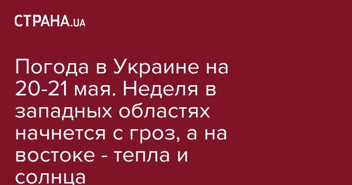 Погода в Украине на 20-21 мая. Неделя в западных областях начнется с гроз, а на востоке - тепла и солнца