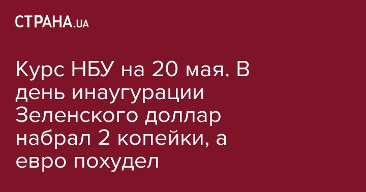 Курс НБУ основных валют на 20 мая установлен на следующем уровне: