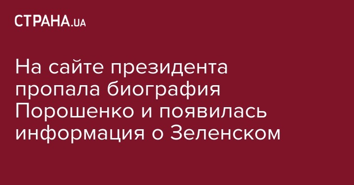 На сайте президента пропала биография Порошенко и появилась информация о Зеленском