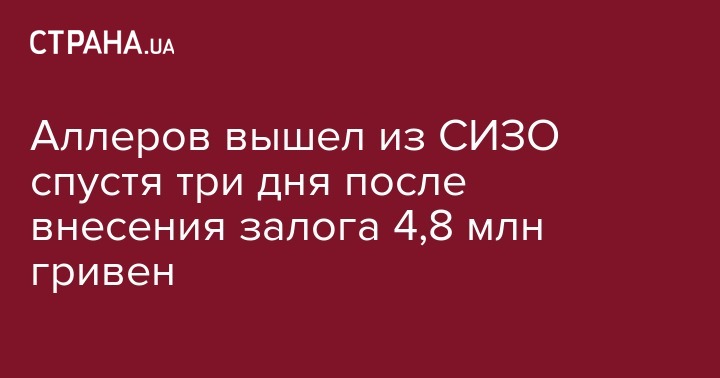 Аллеров вышел из СИЗО спустя три дня после внесения залога 4,8 млн гривен