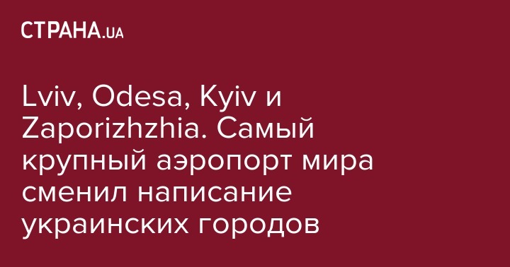 Lviv, Odesa, Kyiv и Zaporizhzhia. Самый крупный аэропорт мира сменил написание украинских городов