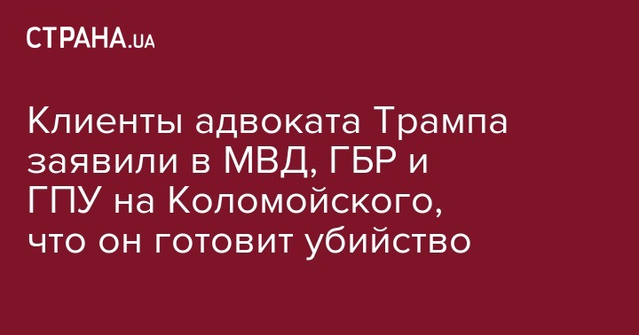 Клиенты адвоката Трампа заявили в МВД, ГБР и ГПУ на Коломойского, что он готовит убийство