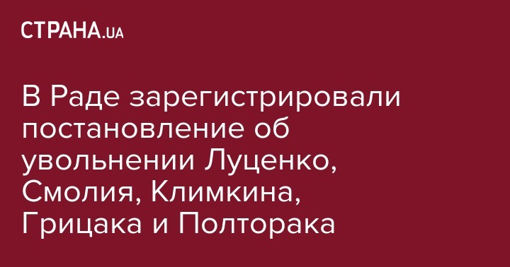 В Раде зарегистрировали постановление об увольнении Луценко, Смолия, Климкина, Грицака и Полторака
