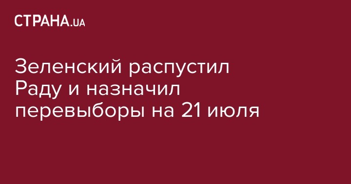 Президент Украины Владимир Зеленский подписал указ о роспуске Верховной Рады и назначил досрочные выборы в парламент на 21 июля.