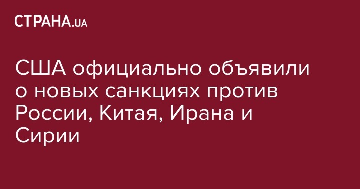 США официально объявили о новых санкциях против России, Китая, Ирана и Сирии
