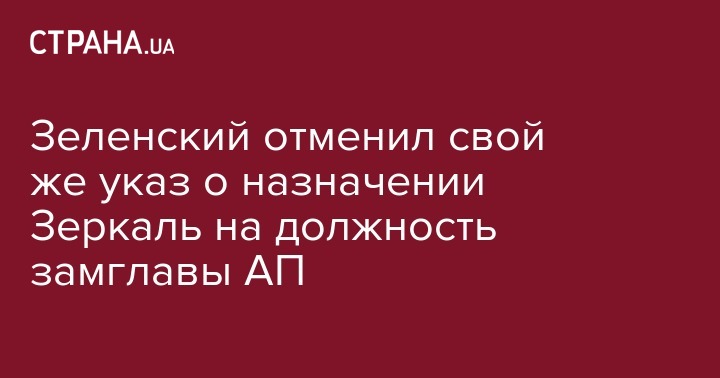 Зеленский отменил свой же указ о назначении Зеркаль на должность замглавы АП