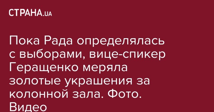 Во время трансляции внеочередного заседания Верховной Рады были видно, как вице-спикер Ирина Геращенко за колонной зала парламента меряет золотые украшения. Пользователи соцсетей сделали скриншот этих эпизодов.
