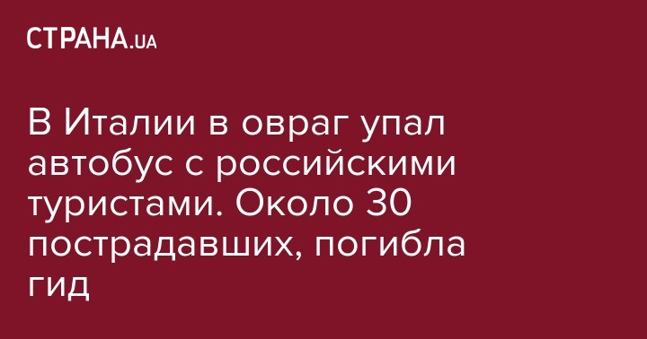 Уточняется, что в автобусе из итальянского города Сиена во Флоренцию ехали не менее 50 россиян. По неизвестным пока причинам транспорт вылетел с дороги в овраг и перевернулся. В катастрофе погиб один человек, еще около 30 получили ранения. Как пишут местные СМИ, погибшая - это 40-летняя женщина-гид, которая сопровождала туристов. Ее тело извлекли из автобуса спасатели.