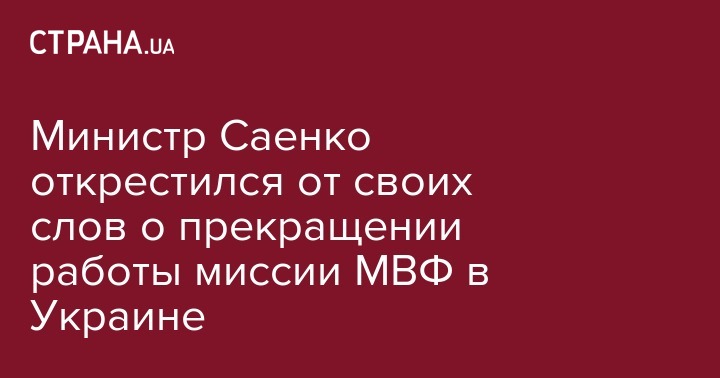 Министр Кабинета министров Украины Александр Саенко отказался от своего заявления относительно прекращения миссии Международного валютного фонда (МВФ) в Украине. Об этом он сказал агентству Интерфакс-Украина в кулуарах форума "Ответственность, доверие, инклюзивность: видение реформ завтрашнего дня. Предложения гражданского общества" в Киеве в среду.