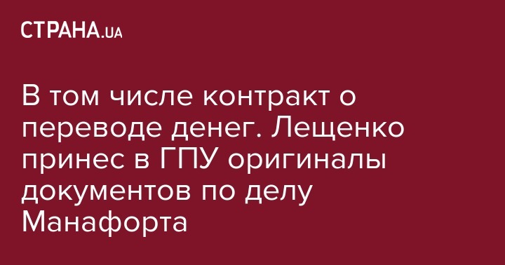 В том числе контракт о переводе денег. Лещенко принес в ГПУ оригиналы документов по делу Манафорта