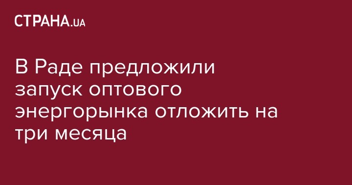 В Раде предложили запуск оптового энергорынка отложить на три месяца