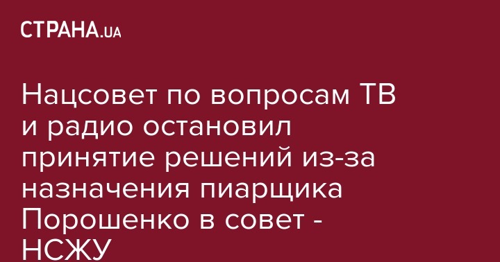 И.о. главы Национального совета Украины по вопросам телевидения и радиовещания Ольга Герасимюк отказалась открывать заседание регулятора, пока не будут получены выводы Парламентского Комитета по вопросам свободы слова или от президента Владимира Зеленского относительно корректности кадровых решений, в частности, назначения на должность члена Нацсовета Владимира Горковенко.