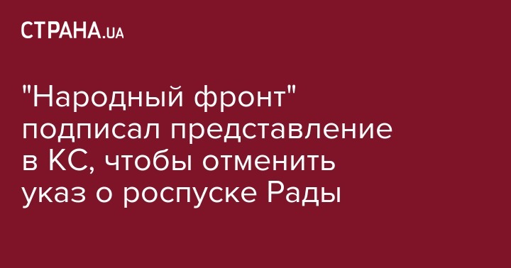 "Народный фронт" подписал представление в КС, чтобы отменить указ о роспуске Рады