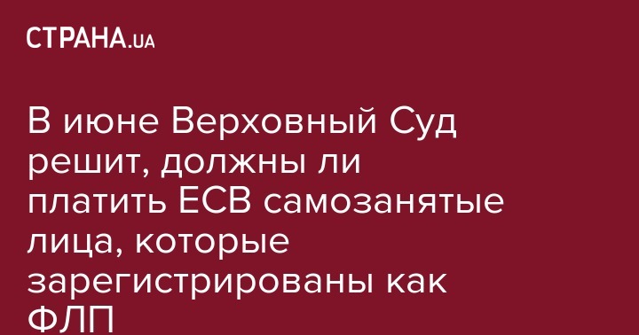 В понедельник, 10 июня, Верховный Суд в составе коллегии судей Кассационного административного суда решит, должно ли самозанятое лицо, зарегистрированное как ФЛП, платить ЕСВ. Об этом пишет "Юрлига".
