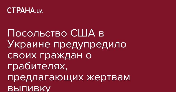 Посольство США в Украине предупредило своих граждан о грабителях, предлагающих жертвам выпивку