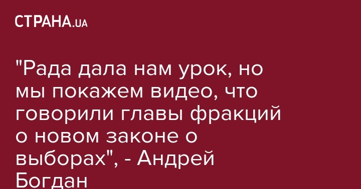 "Рада дала нам урок, но мы покажем видео, что говорили главы фракций о новом законе о выборах", - Андрей Богдан