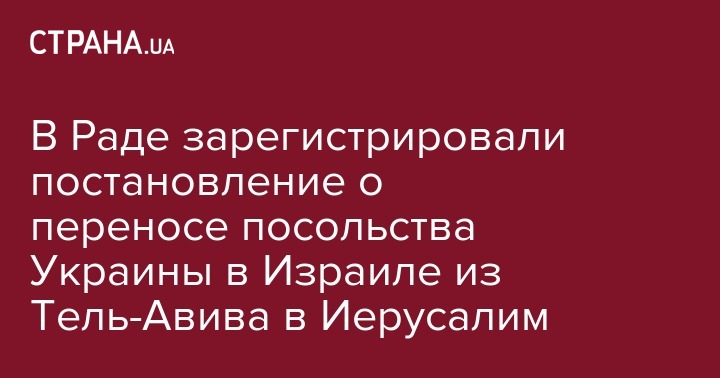 В Верховной Раде зарегистрировали проект постановления о переносе посольства Украины в Израиле из Тель-Авива в Иерусалим.  Об этом говорится в документе № 10325.