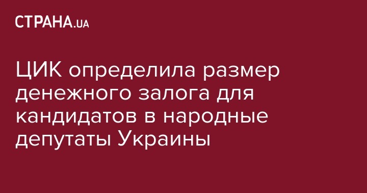 Центральная избирательная комиссия (ЦИК) определила размер денежного залога для кандидатов в народные депутаты Украины и открыла счет для зачисления соответствующих средств. Об этом говорится на сайте ЦИК, где также обнародован номер специального счета Центризбиркома.