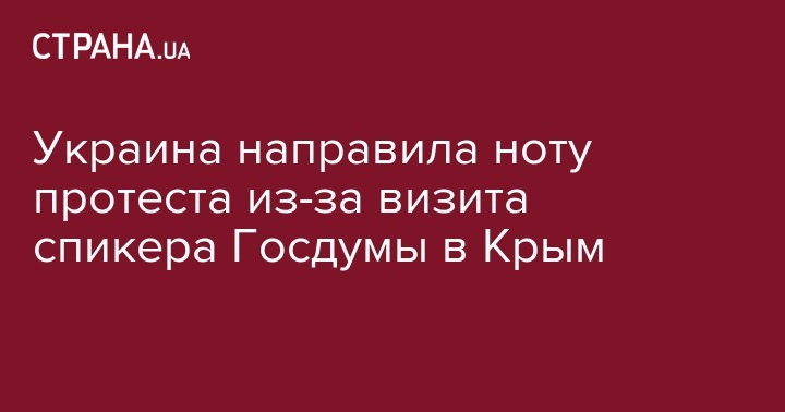 МИД Украины направило ноту протеста в Министерство иностранных дел РФ ноту протеста в связи с визитом председателя Госдумы России Вячеслава Володина в Крым. Об этом сообщает пресс-служба ведомства на странице в Facebook.