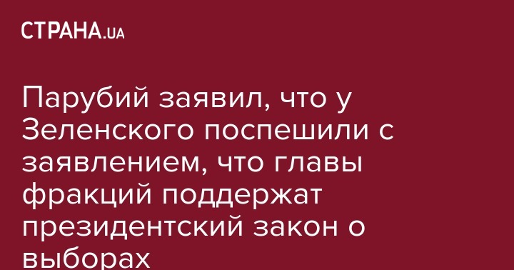 "По словам Руслана Стефанчука, во время консультаций с Президентом Украины 21 мая Председатель Верховной Рады, его заместители и лидеры фракций и групп отметили, что пока нет возможности быстро и качественно принять открытые избирательные списки. Поэтому участники встречи согласовали компромиссное решение - поддержать изменения в действующий закон о выборах народных депутатов, которые отменяют мажоритарную систему и уменьшают проходной барьер до 3%.... Результаты консультаций были отражены в соответствующем законопроекте, поданном в Верховную Раду. Однако депутаты проигнорировали предыдущие договоренности и провалили голосование, мотивируя это тем, что они якобы хотят открытых списков", - говорится в сообщении, опубликованном на сайте президента и вызвавшем негодование Андрея Парубия.
