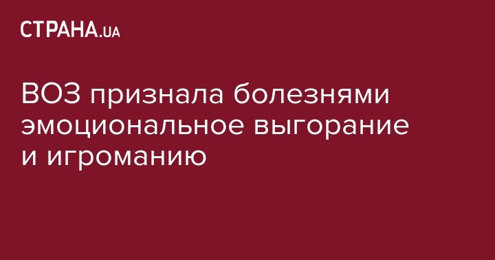 ВОЗ признала болезнями эмоциональное выгорание и игроманию