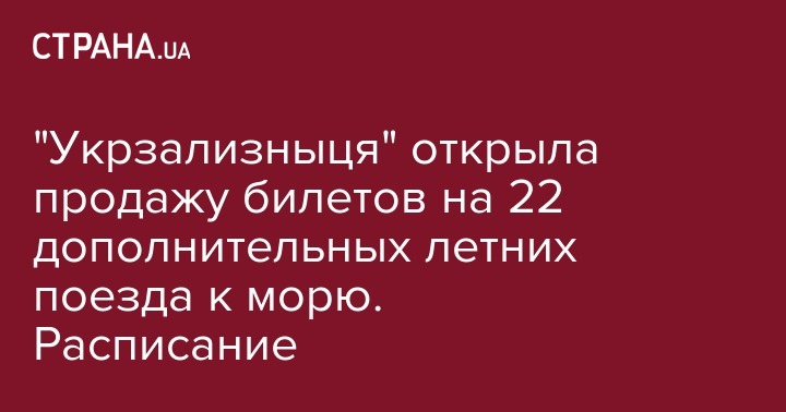 "Укрзализныця" открыла продажу билетов на 22 дополнительных летних поезда к морю. Расписание