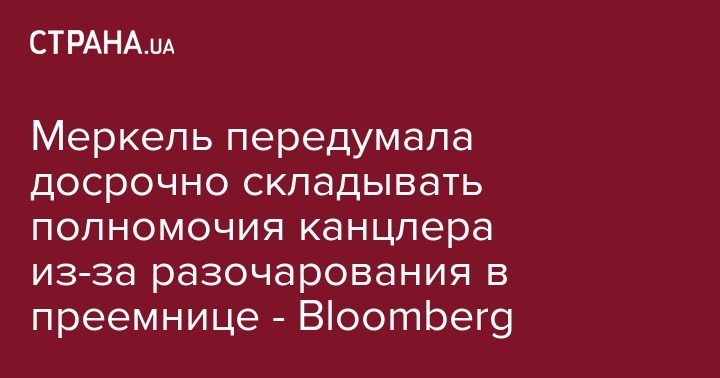 Канцлер Германии Ангела Меркель не будет досрочно складывать свои полномочия, так как она разочарована в своей потенциальной преемнице Аннегрет Крамп-Карренбауэр. Об этом со ссылкой на источники пишет Bloomberg.