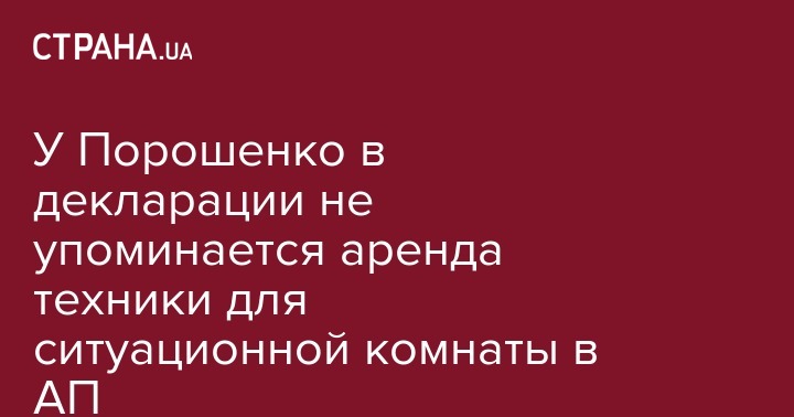 В декларации Петра Порошенко за 2018 год не содержится данных о выделении средств на аренду мониторов и серверов для ситуационной комнаты в АП. Об этом свидетельствуют данные документа, опубликованного в Едином государственном реестре деклараций.