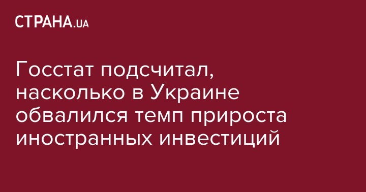 Госстат подсчитал, насколько в Украине обвалился темп прироста иностранных инвестиций
