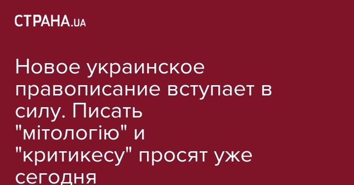 Новое украинское правописание вступает в силу. Писать "мітологію" и "критикесу" просят уже сегодня