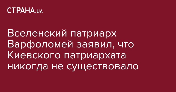 Киевский патриархат не существует и никогда не существовал. Об этом заявил Вселенский Патриарх Варфоломей во время встречи с украинскими журналистами в Стамбуле на прошлой неделе. Об этом на своей странице в соцсети Facebook написал глава НСЖУ Сергей Томиленко.