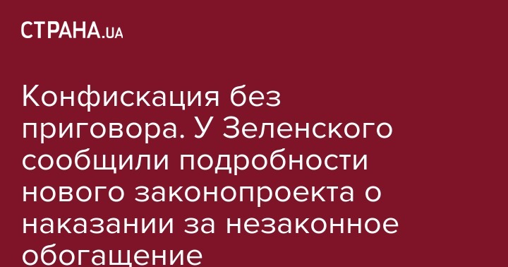 Ранее, 3 июня, в Верховной Раде был зарегистрирован законопроект №10358 "О внесении изменений в некоторые законодательные акты Украины о конфискации незаконных активов лиц, уполномоченных на выполнение функций государства или местного самоуправления, и наказания за приобретение таких активов". Инициатором законопроекта выступил президент Украины Владимир Зеленский. Текст законопроекта на сайте Рады в настоящее время отсутствует.